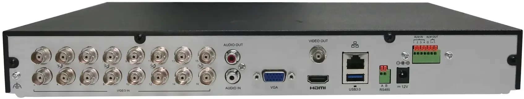 XVR302-16Q3 er en 16-kanals optager, der primært er udviklet til analoge overvågningskameraer. Det betyder, at kameraerne forbindes direkte med koaksialkabel via BNC stik.