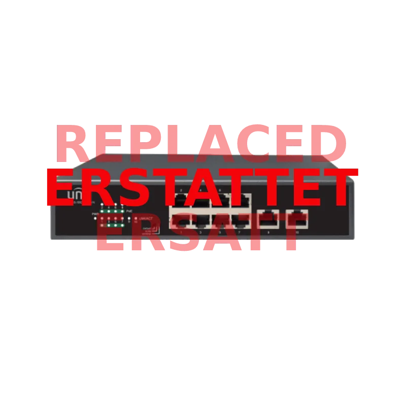 - 8 ports for cameras + 2 uplink ports for network connection.