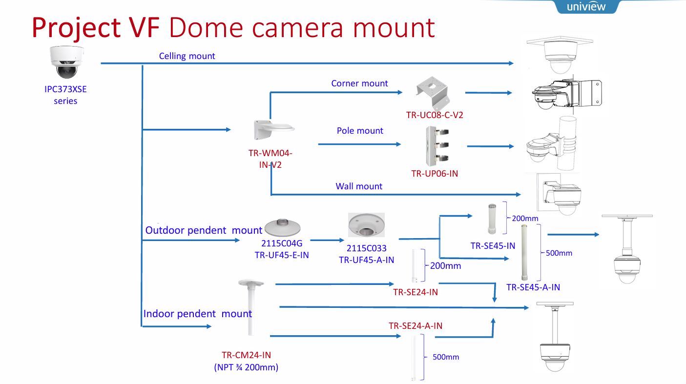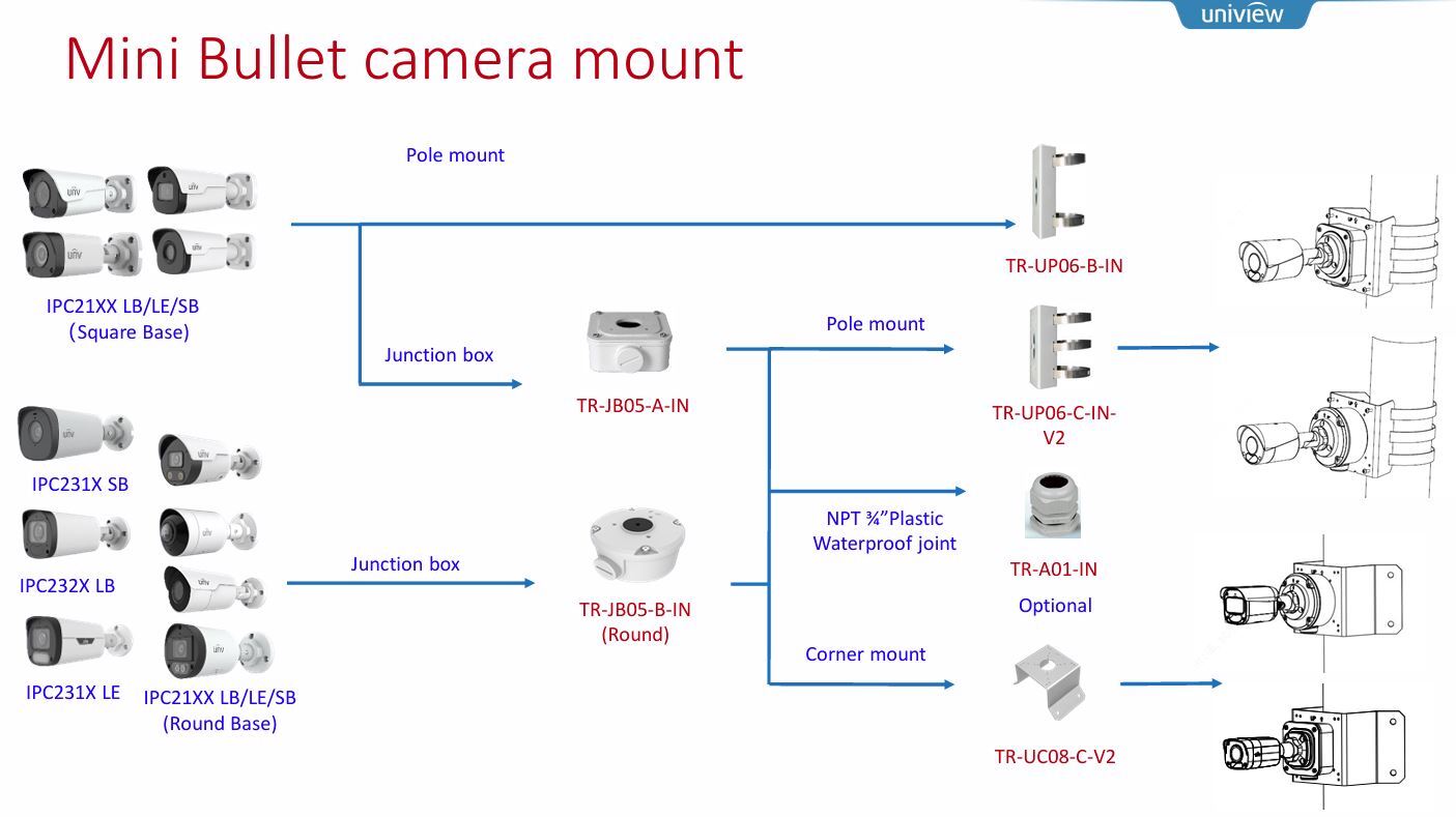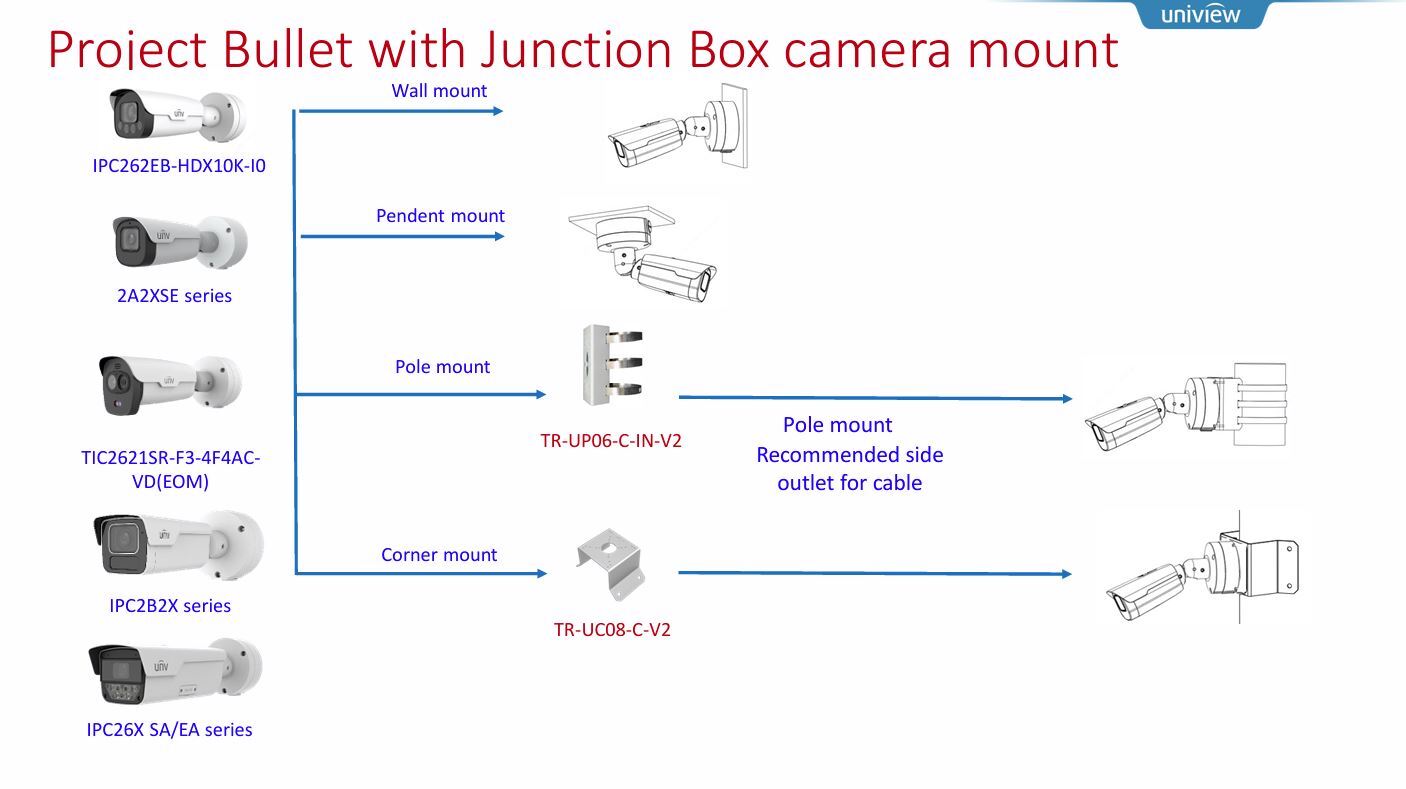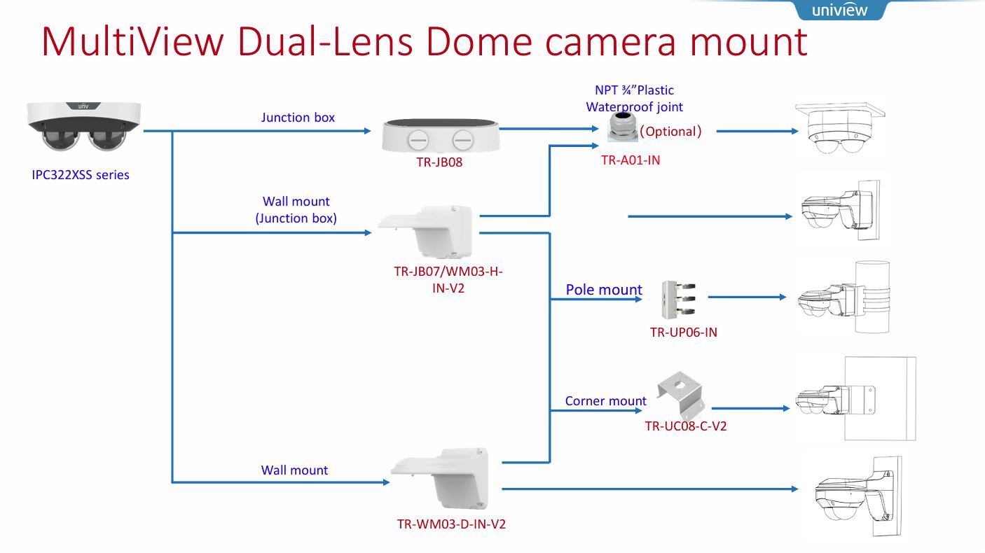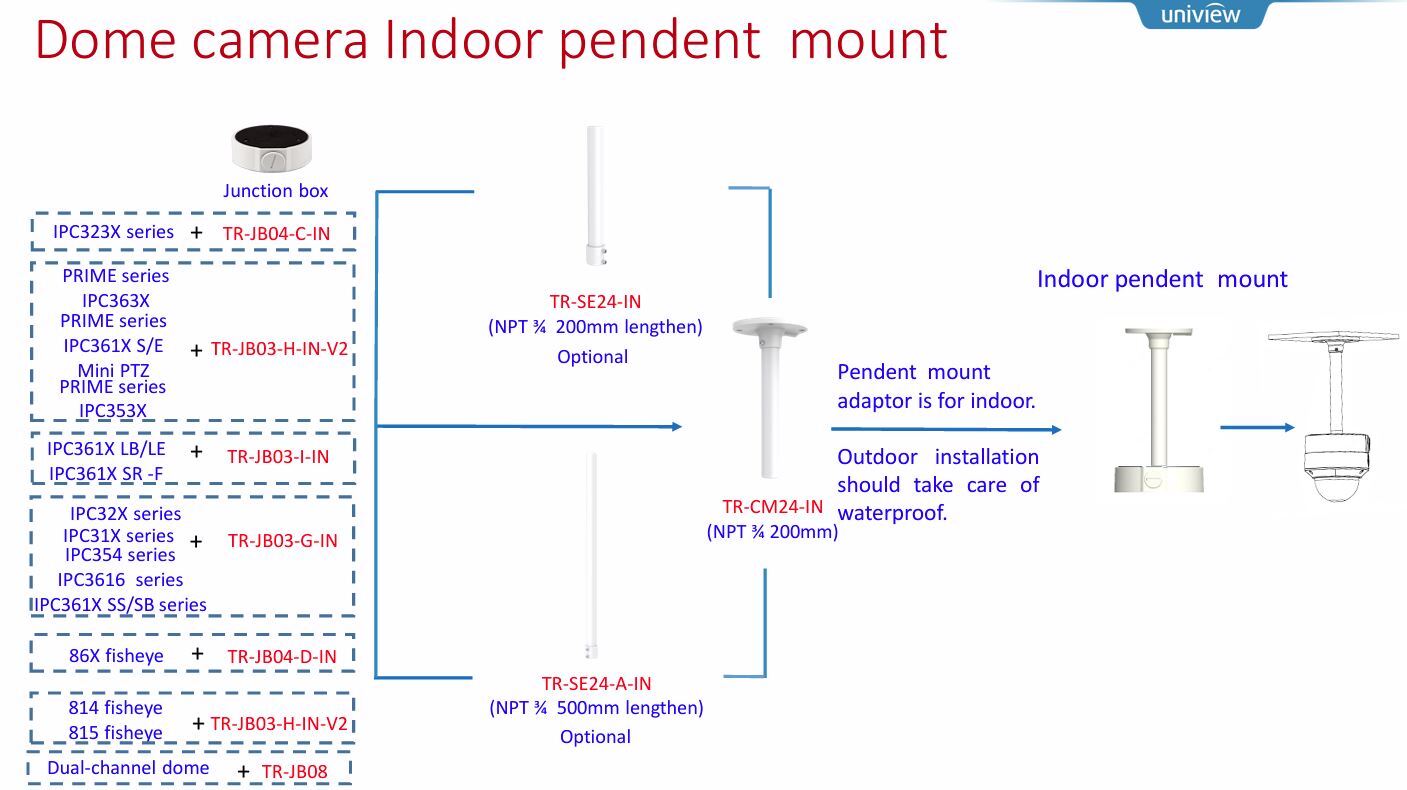Skal du bruge beslag eller adapter til et Uniview kamera, så kan du bruge denne guide, men husk også at du kan finde alle de beslag der passer til kameraet, ved at gå til produktets side og vælge fanen .PDF og så downloade datasheet, her står det på sidste side ????