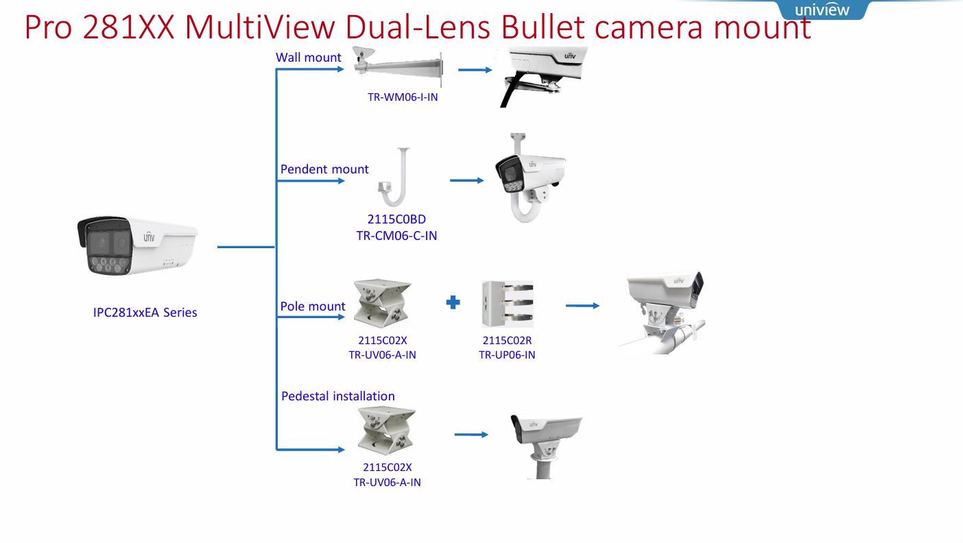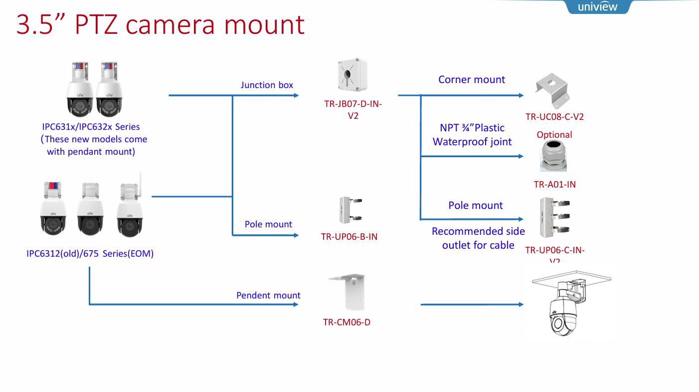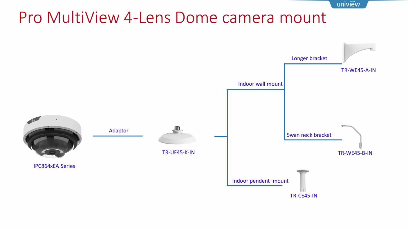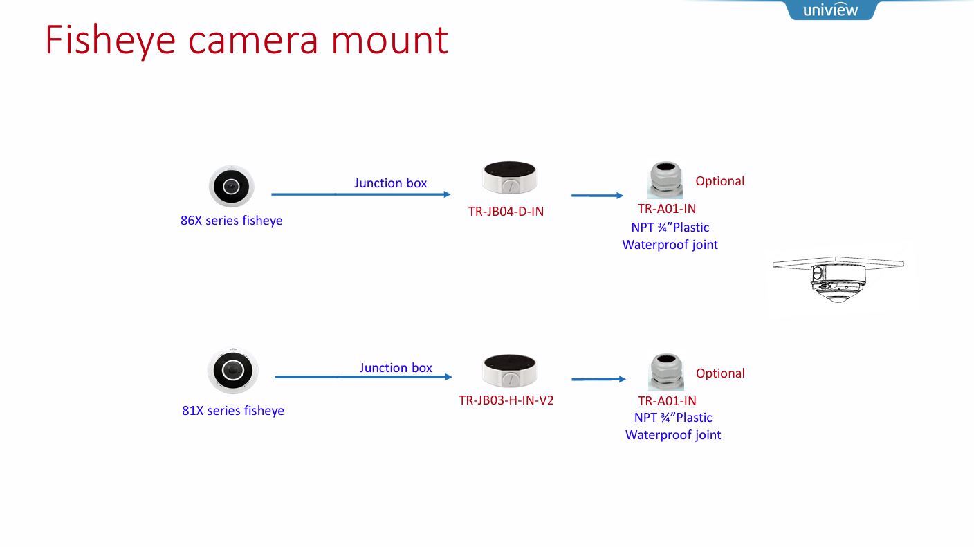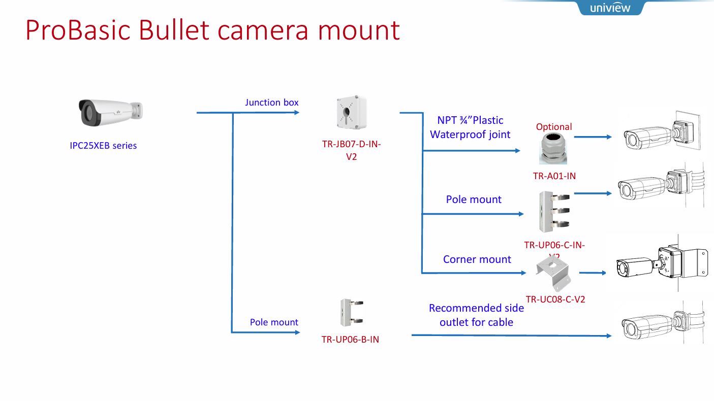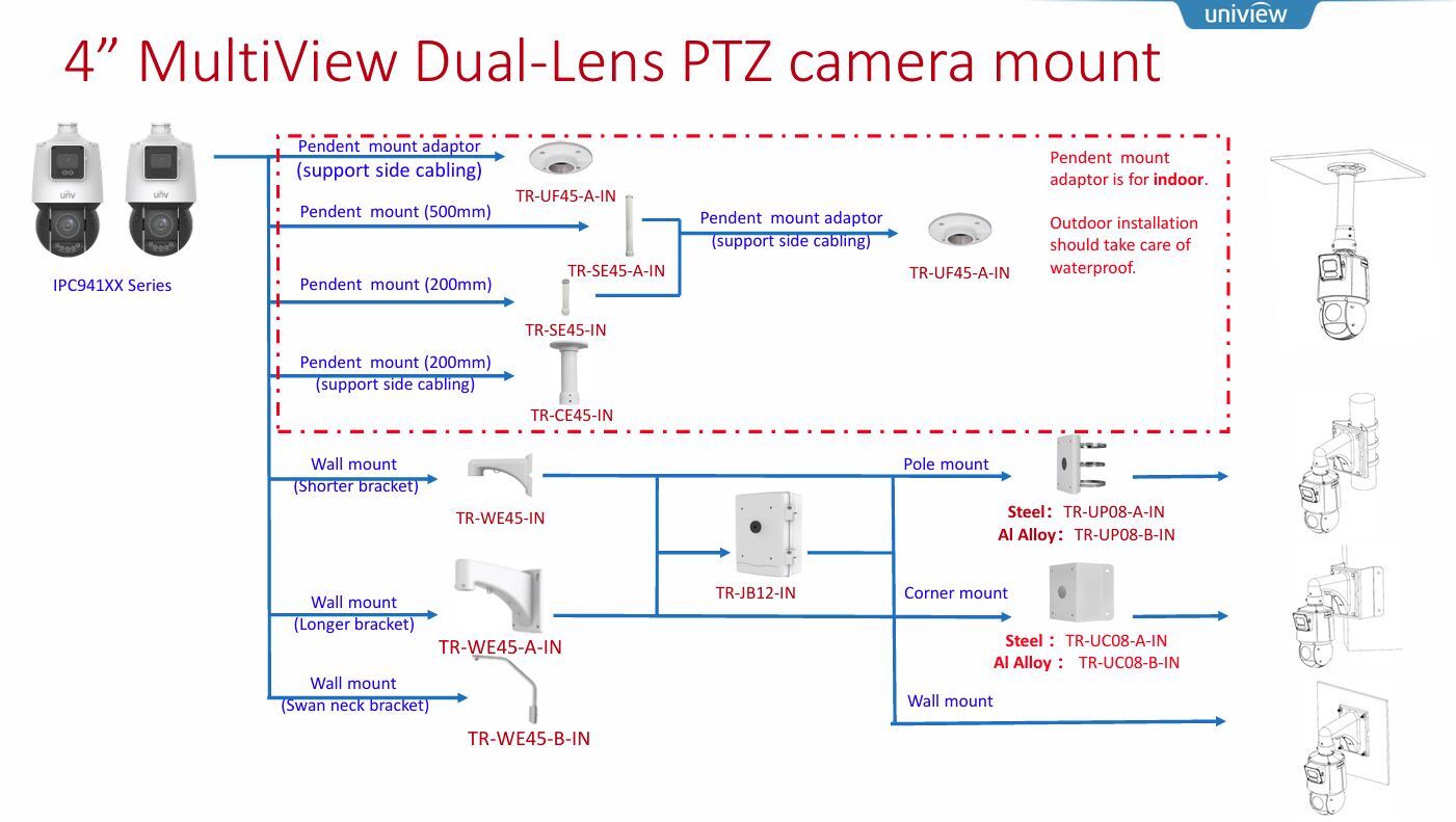 Skal du bruge beslag eller adapter til et Uniview kamera, så kan du bruge denne guide, men husk også at du kan finde alle de beslag der passer til kameraet, ved at gå til produktets side og vælge fanen .PDF og så downloade datasheet, her står det på sidste side ????