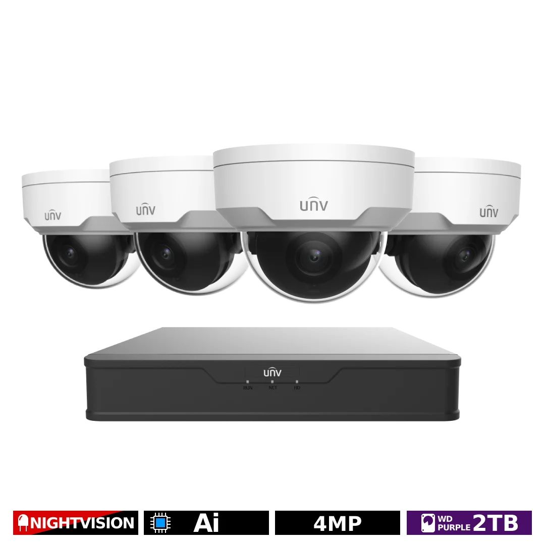 Uniview overvågningssæt med 4 x 4MP dome kameraer og 4 kanals optager