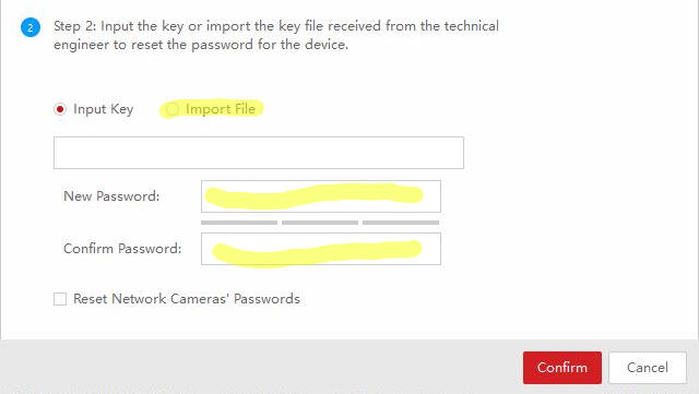 - Når du mottar tilbakestillingsfilen fra oss, trykk Importer fil , finn filen fra oss og lag en ny kode.